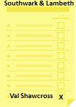 London Elections Thursday 3rd May 2012 (7am-10pm)A Clear Choice for LondonersOn 3rd May 2012 I am asking you to support me for re-election as your London Assembly Member for Lambeth and Southwark. I have also been nominated by Labour's Mayoral candidate Ken Livingstone as his running mate for Deputy Mayor of London. Here's why I think you should support us: Labour is pledging to ease the squeeze on hard working Londoners here are the six reasons why you should vote for Ken Livingstone and Val Shawcross on May 3rd. Six pledges - Kens key commitments to Londoners