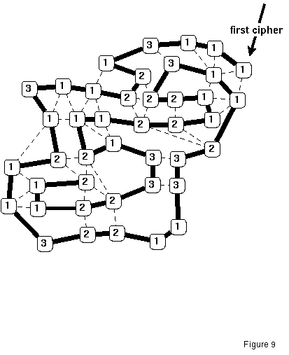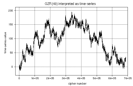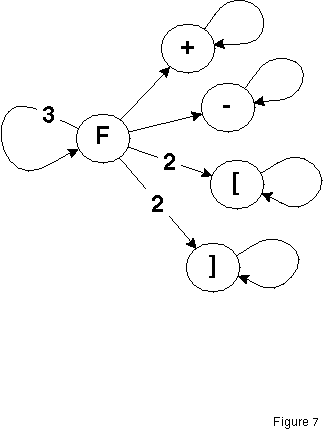 This system is visualized in figure 7 (in the style of figure 4). If you iterate this system, what will the abundances of the five characters be? If you don't see it at once, you could do the computation on a computer and see that the abundances of the characters eventually settle to 1/4 for F and each of the brackets, and 1/8 for the + and - characters. Of course, the growth factor is 3 because only F is responsible for the development of the system. This string rewriting system is one of the simpler L-systems [ 2, 3, 11]. When you experiment with pseudocode 1 (see appendix) you will generate fractal images of trees and bushes. Can you find similar interpretations for the strings of the GZR? Equation systems (almost always) have characteristic limit vectors and growth factors. This is exemplified by the above system and also by the GZR. The abundances of the GZR can be computed by pseudocode 2. Now you can see the relation of the exemplary L-system to the audioactive development. For instance, interpret pairs of ciphers of the GZR as drawing instructions. There are eight different pairs: 11, 12, 13, 21, 22, 23, 31 and 32 (33 never occurs, proof is given in [13]). Now interpret these eight pairs as letters of a graphical alphabet analogous to pseudocode 1, possibly with some extensions or redundancies. IÂve tried some simple interpretations, but they didnÂt show the (fractal) self-similarity which should be there because the iteration rule of the GZR is pure self-description. Can you find a beautiful interpretation of the GZR? L-systems are used in - Biology: modelling cell division patterns and morphogenesis research - Robotics: structural pattern recognition, speech recognition - Computer Science: semantics of programming languages [2] Beautiful pictures of plants can be found in the book by Lindenmayer and Prusinkiewicz[3]. The complex L-systems described there model the development patterns of plants, their growth and flowering patterns.